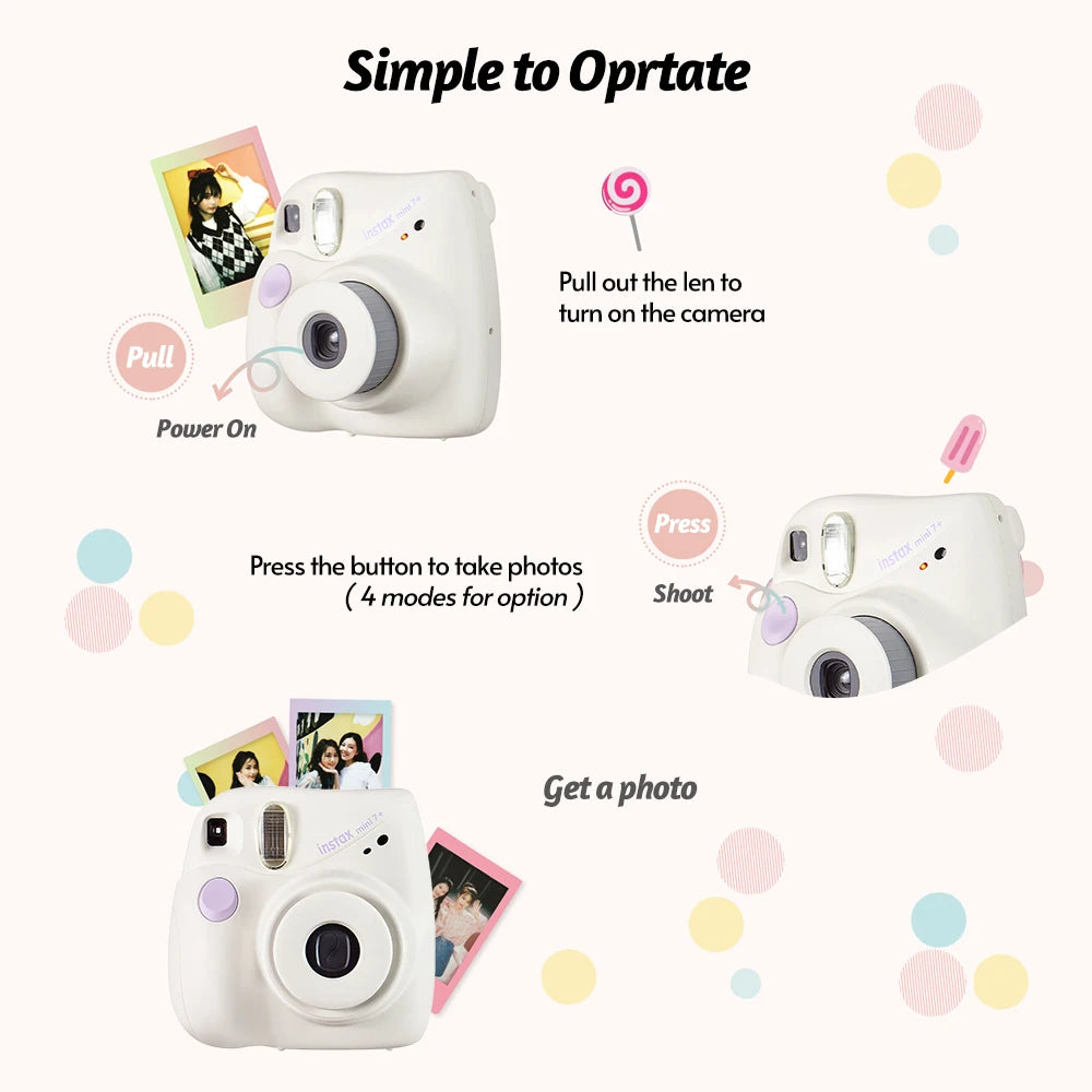 Fujifilm Instax Mini 7+ instant camera with cute and lovely outlook design, is a perfect festival or birthday gift for friends and families. Super simple operation, just pressing the button and waiting for a few minutes, then you will get the beautiful photos. With it, you can record happy moments freely and share with your friends & families instantly.